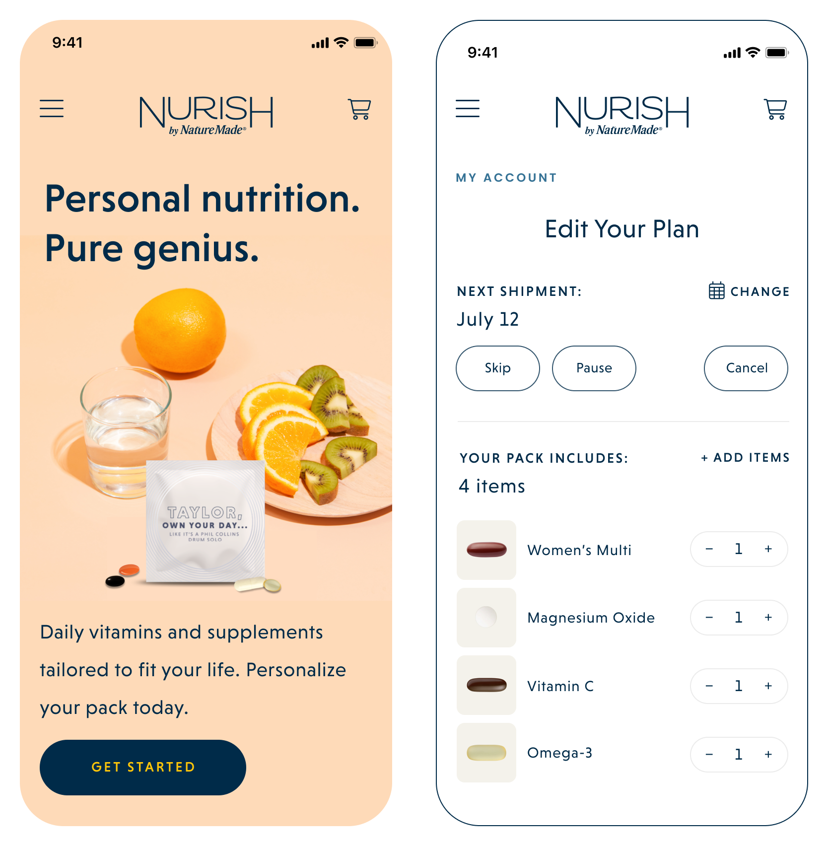 Nurish was a vitamin and supplement subscription service built on Shopify. Customers took a quiz and received recommendations for which products matched their health needs. Subscribers received a monthly box of their selections portioned out into daily “packs”.