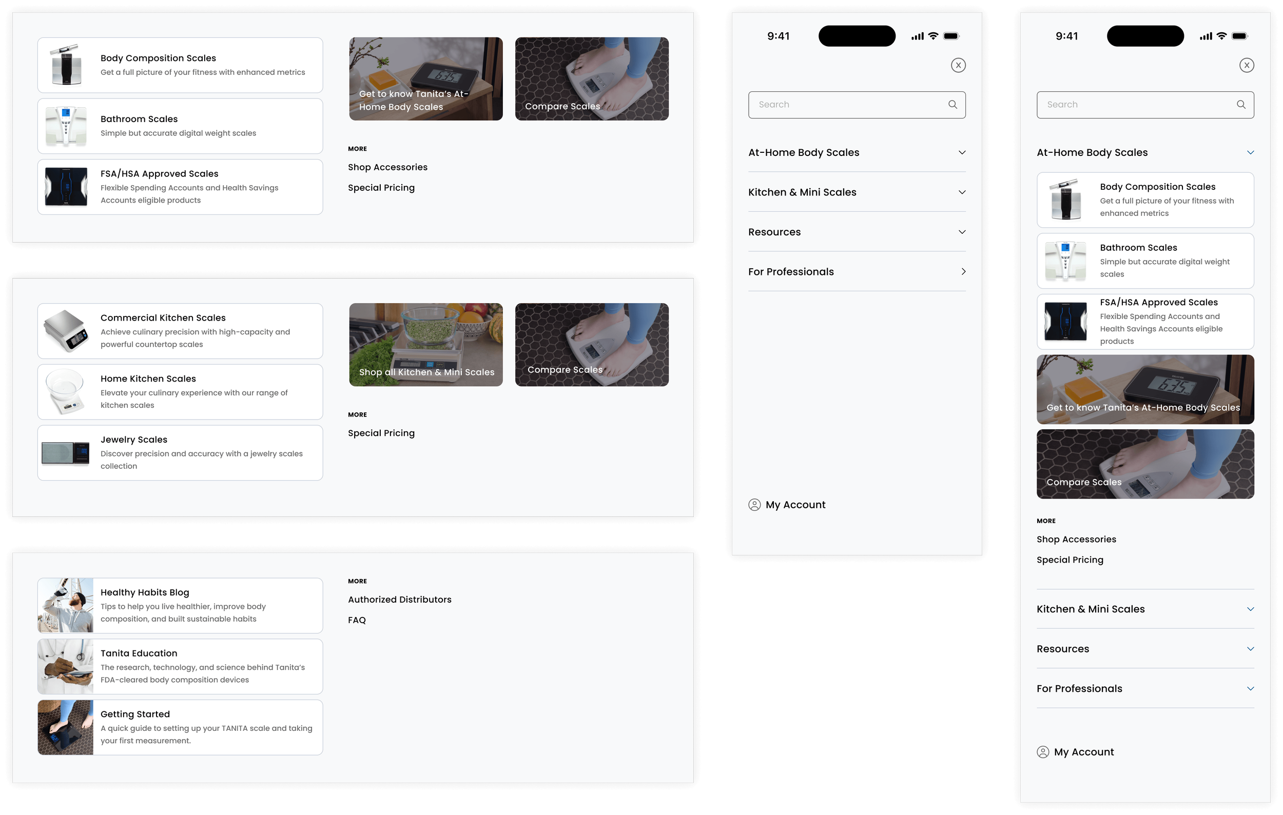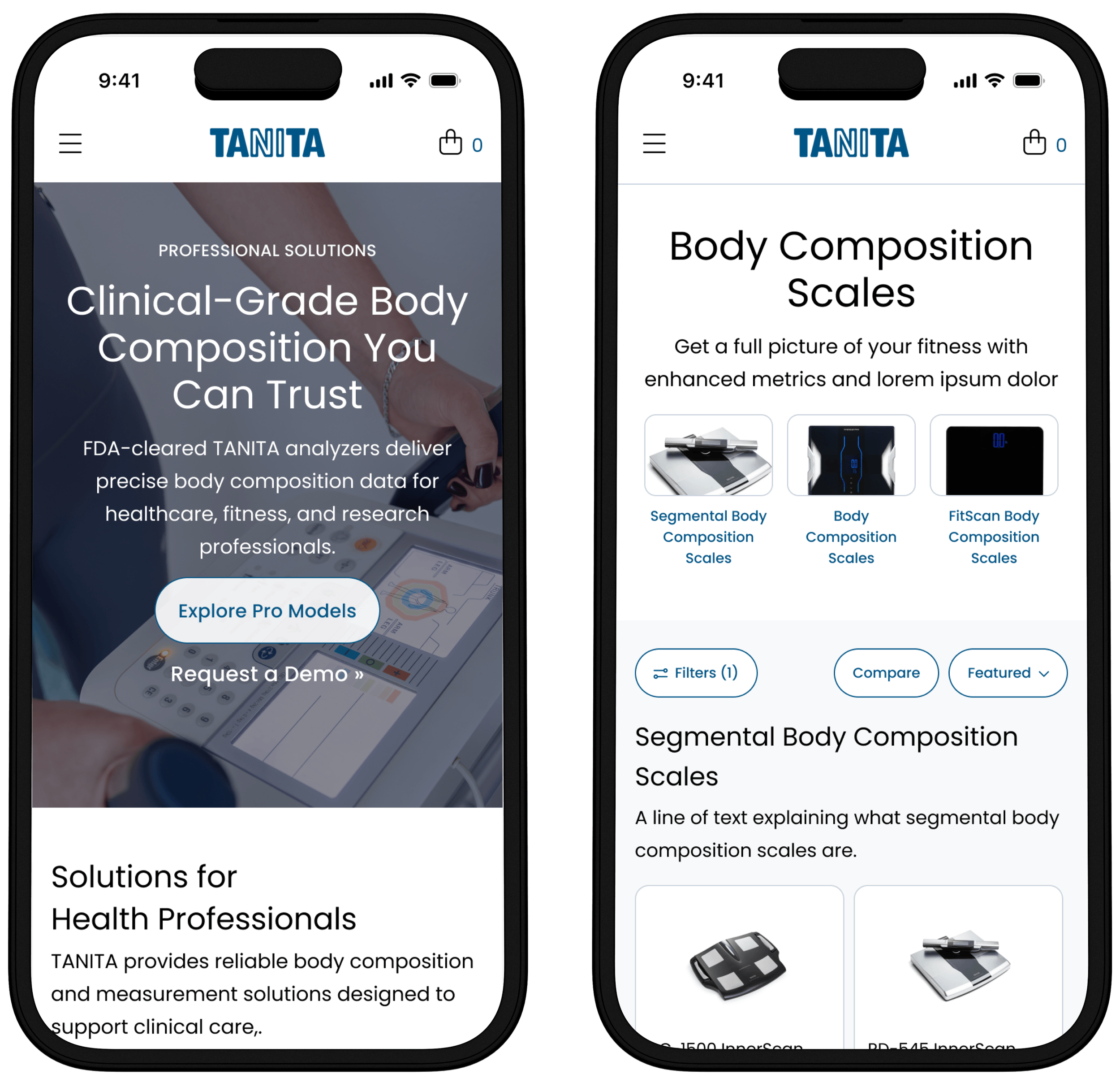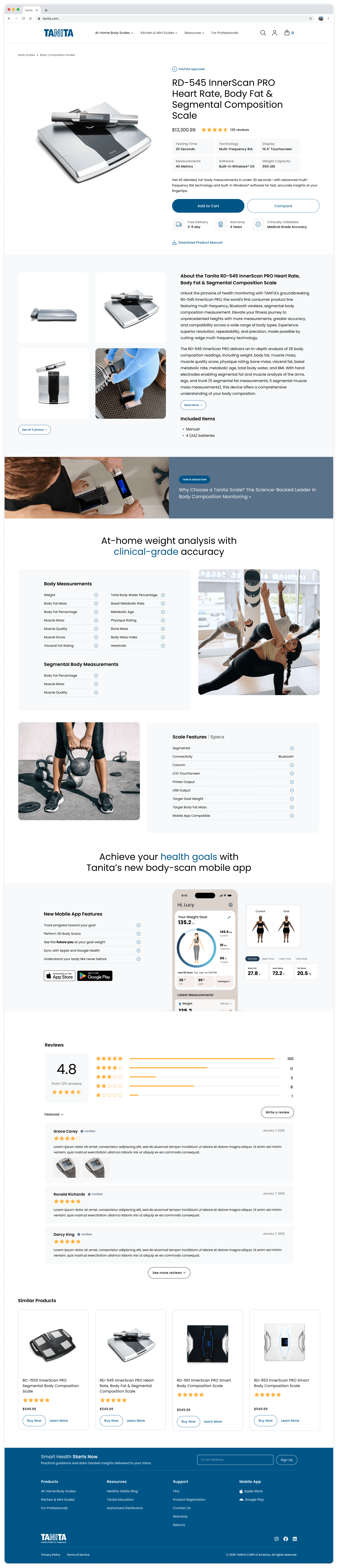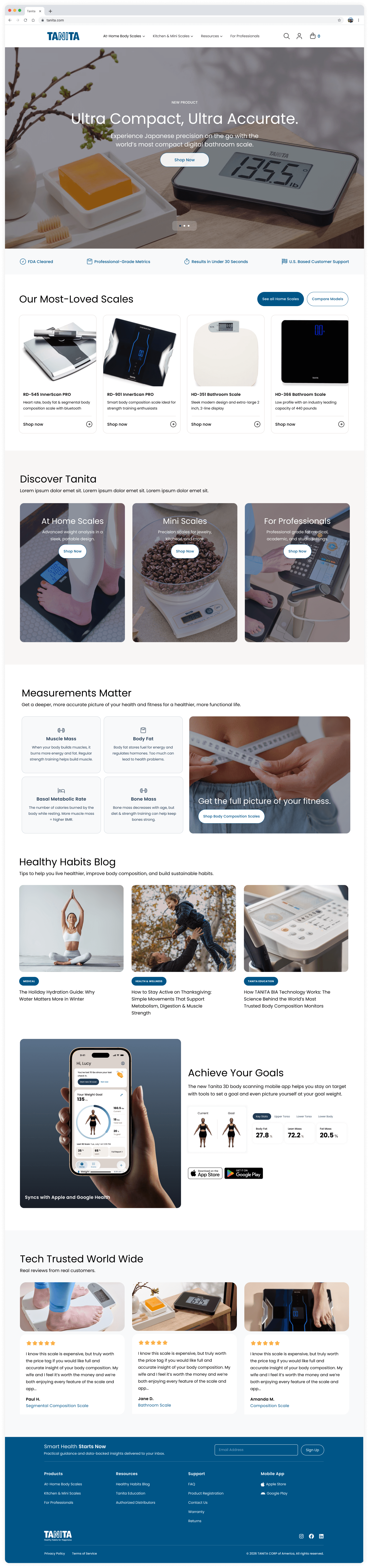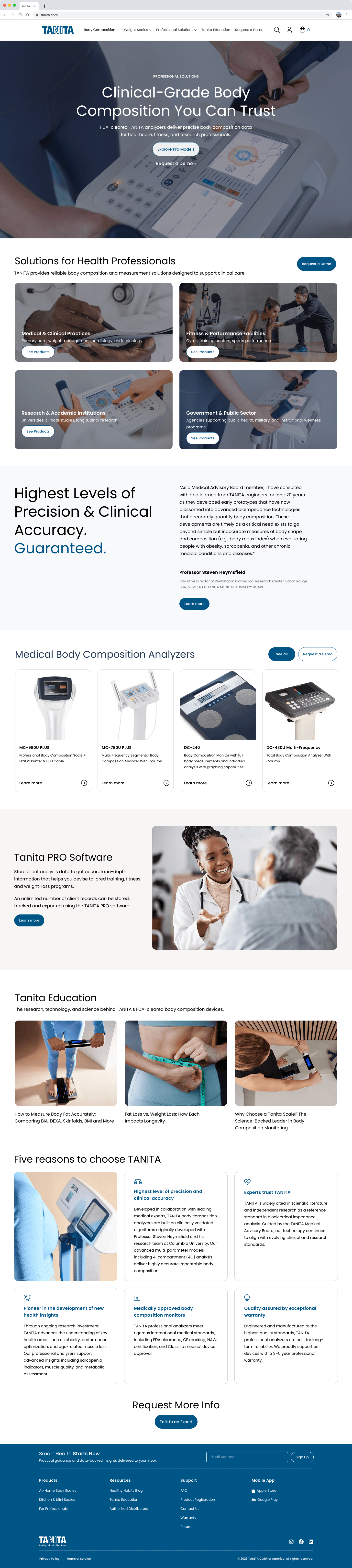 A redesign of Tanita’s U.S. smart scale website to make it easier to navigate for their consumer and professional audiences, and optimized for mobile devices.